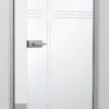 Rillenschliff-Tür mit 6 mm polierter V-Rille auf ganzflächigem Siebdruck mattweiß.
