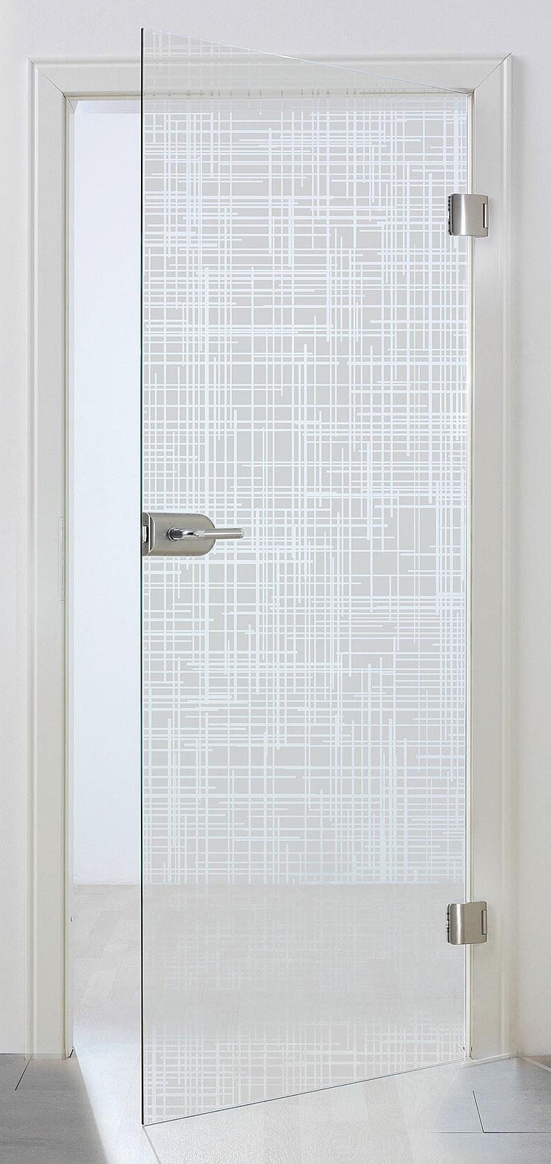 Siebdruck-Tür in Klarglas mit 1-farbigem Siebdruck milchweiß.